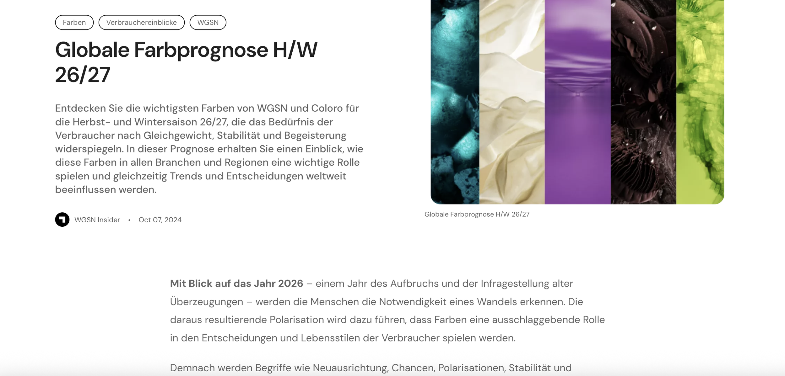 Global Key Colours - WGSN 4 Nov Written By C. Heilmaier German translation detailing the key colours for 26/27. Read here. C. Heilmaier